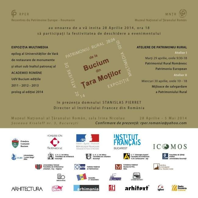 Avem onoarea de a vă invita la deschiderea Atelierelor de Patrimoniu Rural de la Bucium, din Țara Moților, miercuri 28 aprilie 2014, la Muzeul Național al Țăranului Român